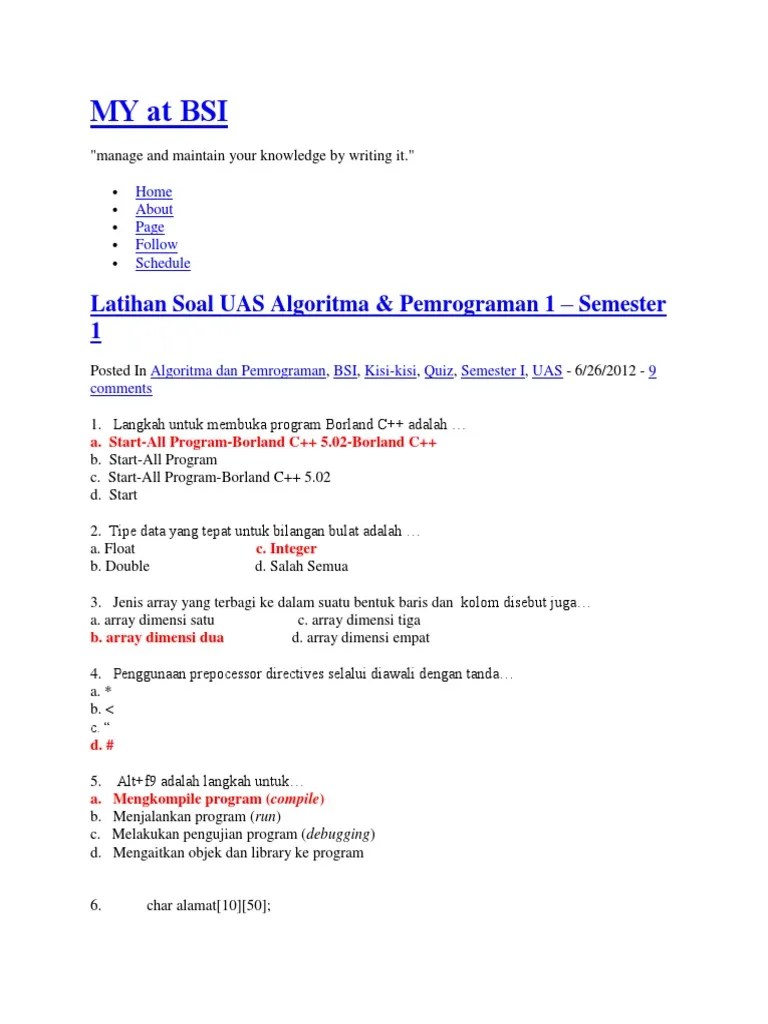 Posted by priangga otviapta posted on 08.28.00 with 1 comment. Last record about baru soal ujian saringan bsi bahasa inggris. soal uas bahasa inggris bsi pilihan ganda tapi langsung jawabannya di thread ini soal tahun 2016. soal soal uts kuliah semester 1. Inilah soal uas bsi akuntansi semester 1.
